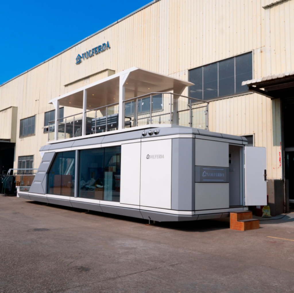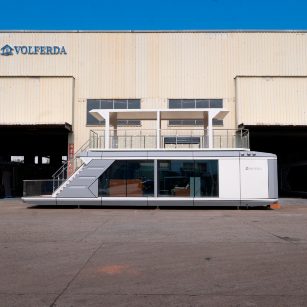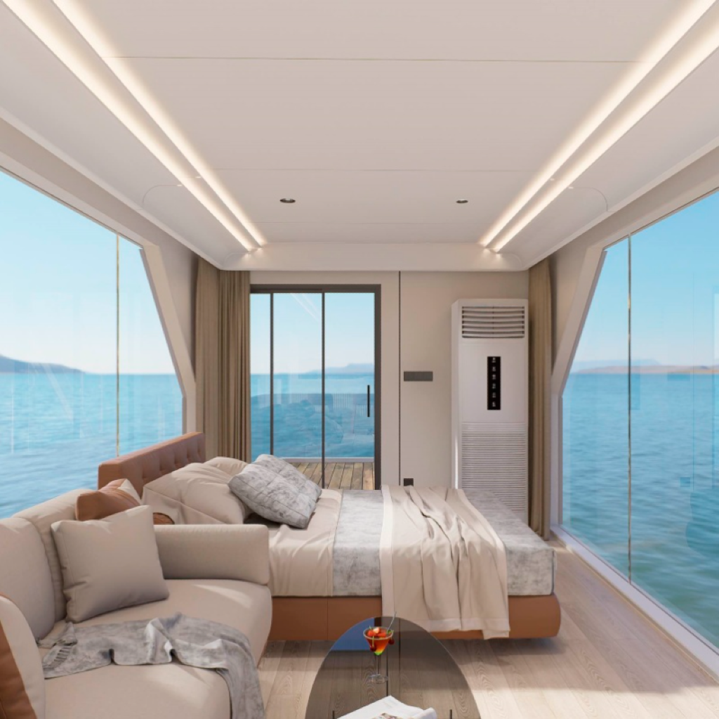 1. Obluci de aluminiu pe plafon și pereți: Interiorul este finisat cu un înveliș din aluminiu atât pe plafon, cât și pe pereți, oferind un aspect modern și elegant.