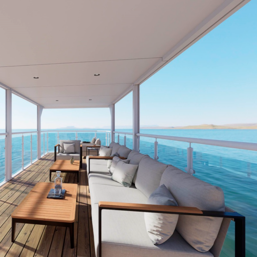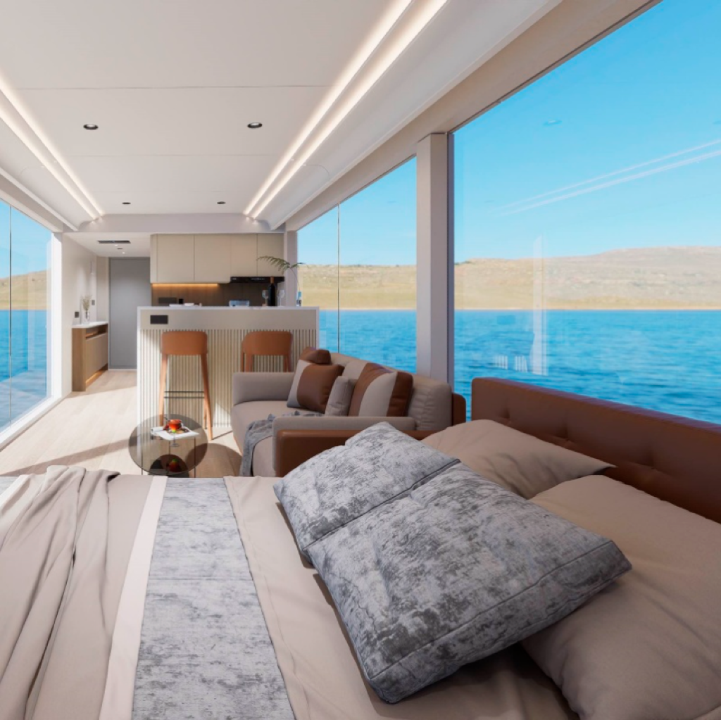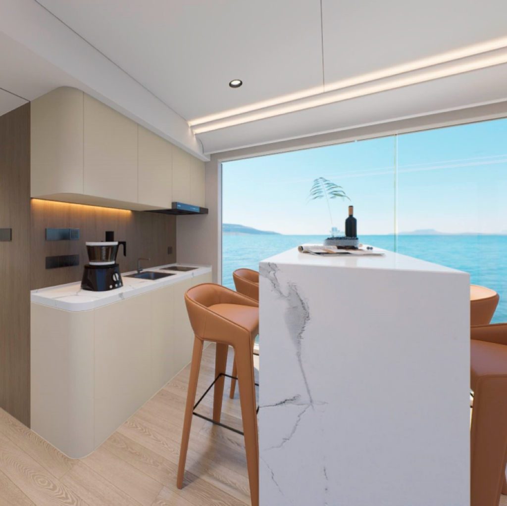 1. Obluci de aluminiu pe plafon și pereți: Interiorul este finisat cu un înveliș din aluminiu atât pe plafon, cât și pe pereți, oferind un aspect modern și elegant.
