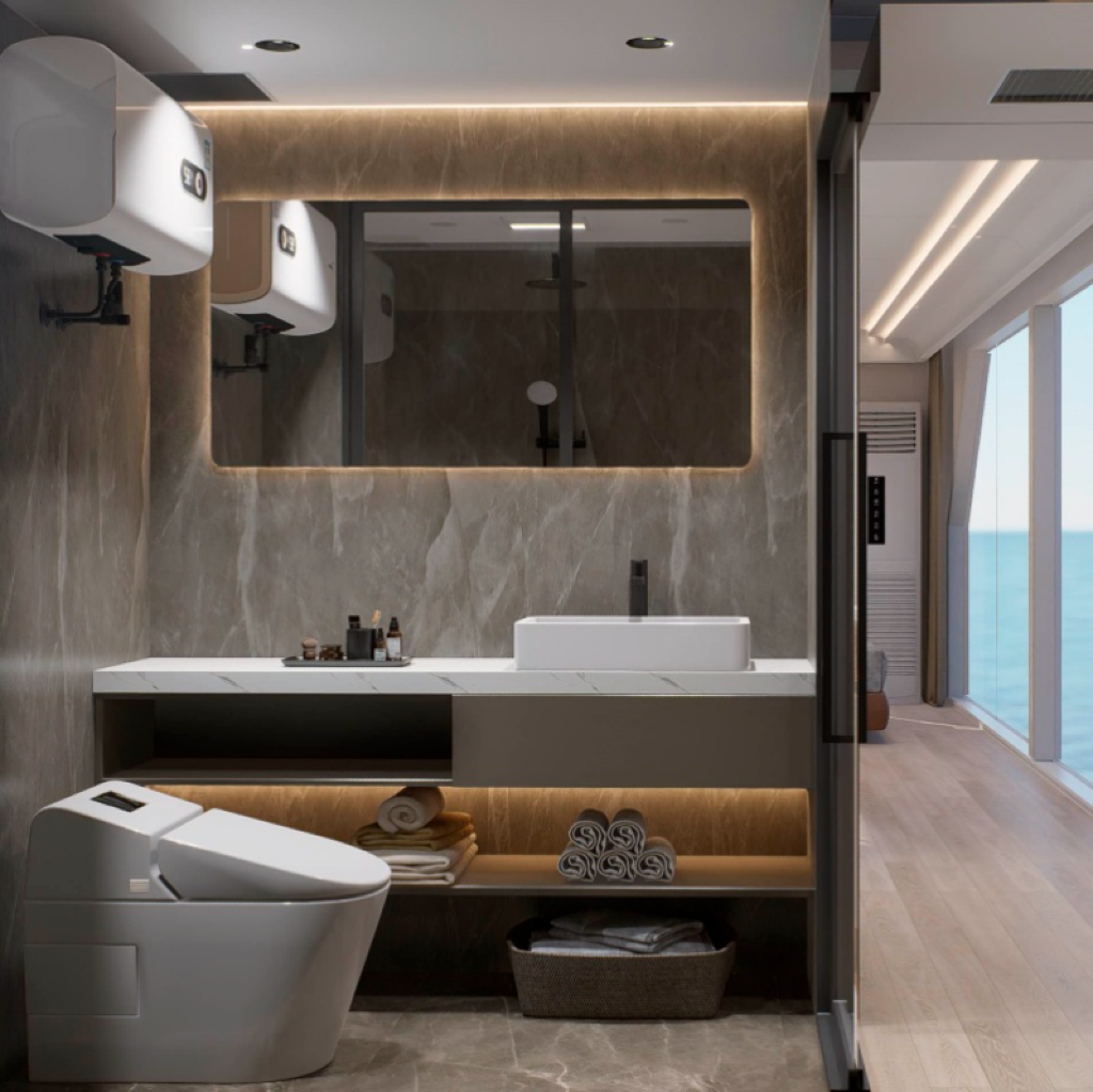 10. Încălzire în baie: Sistem de încălzire Opple pentru baie, asigurând o temperatură confortabilă în baie.